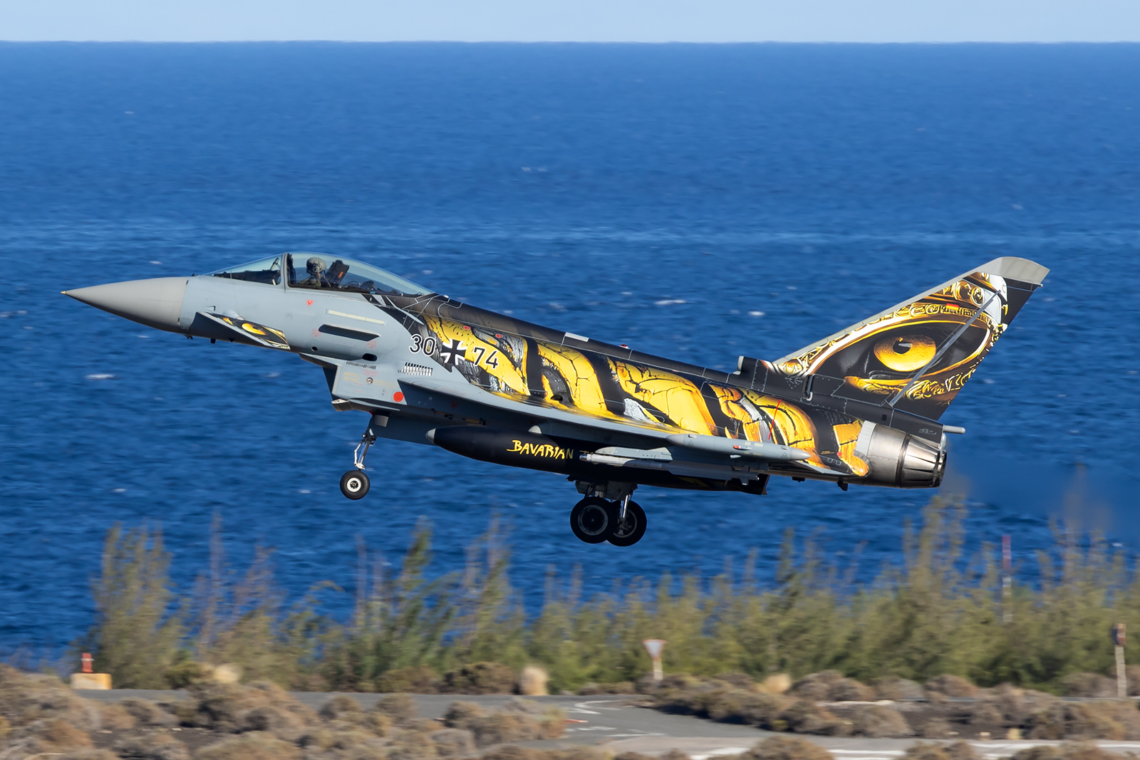 Several aircraft taking part in the exercise featured special liveries. One of the most notable was a German Air Force Eurofighter Typhoon from TLG 74 in a tiger scheme, prepared for the NATO Tiger Meet exercise held a few weeks before Ocean Sky